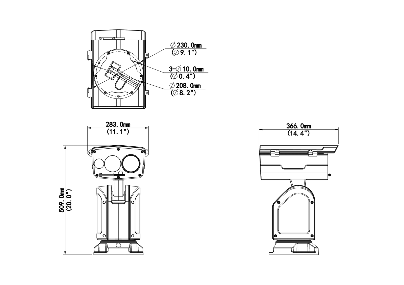 •  Vari-focal laser: 800 m (2624.7 ft) distance, proportional to optical zoom of camera module